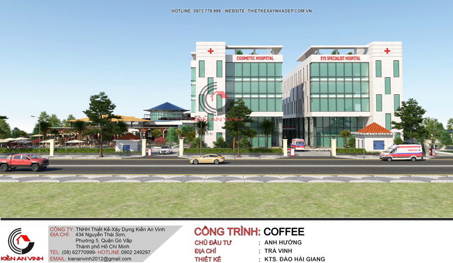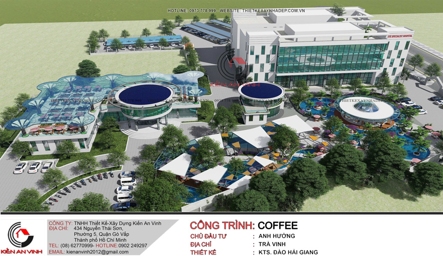 Bản 3D thiết kế bệnh viện kết hợp quán cafe hiện đại