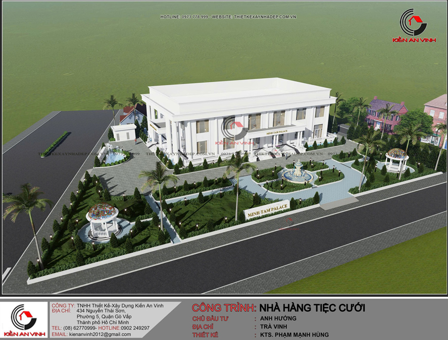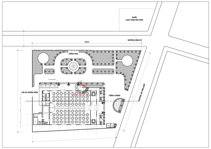 Bản thiết kế nhà hàng tiệc cưới 1000m2 có khuôn viên rộng