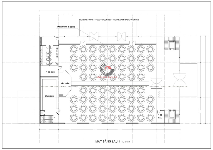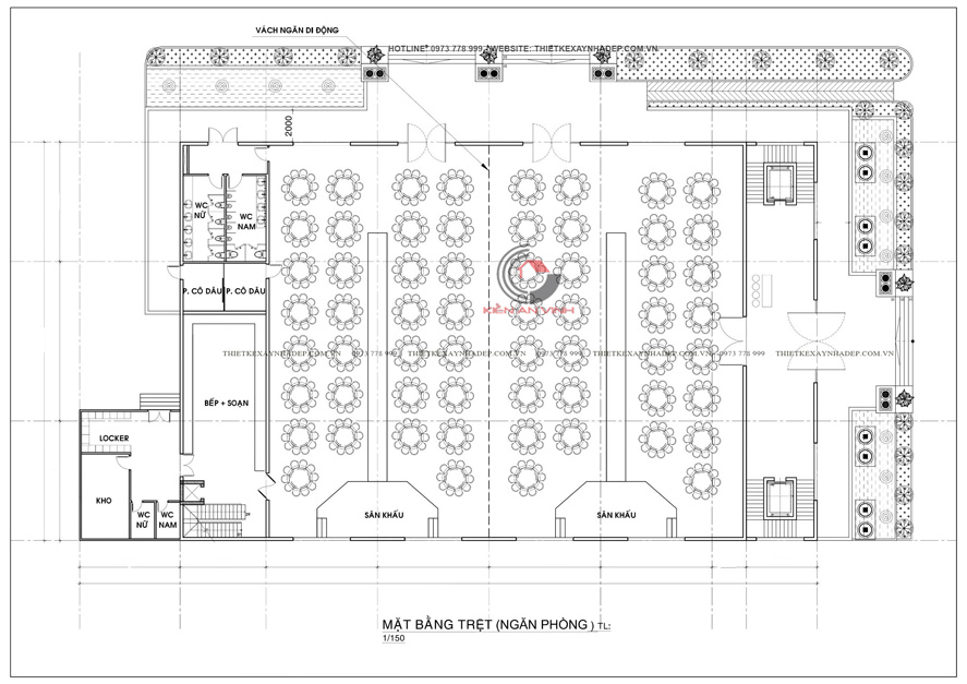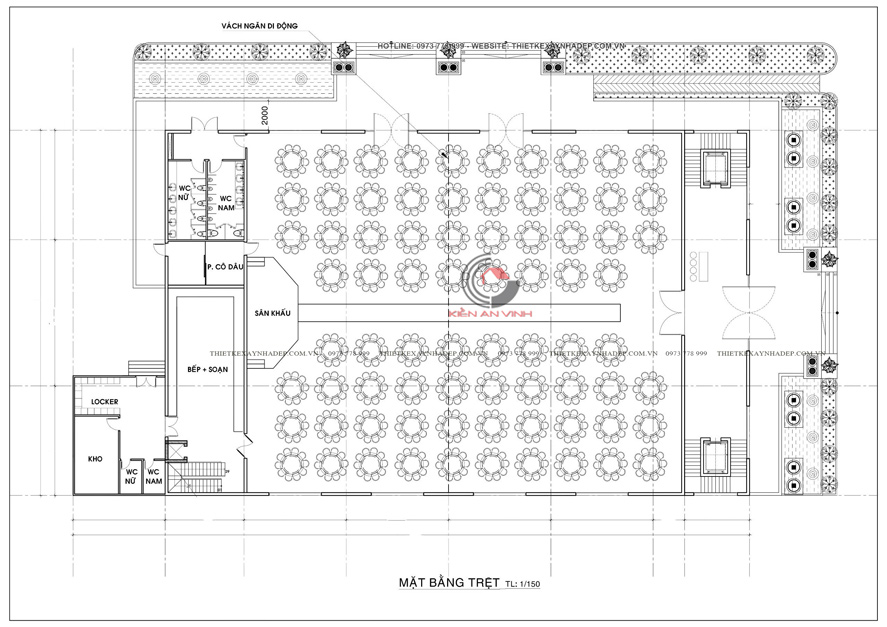 Bản vẽ công năng bên trong thiết kế nhà hàng tiệc cưới 100m2