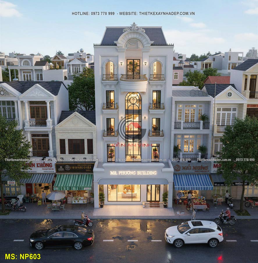 Mẫu nhà 5 tầng kết hợp kinh doanh 10x20m tân cổ điển