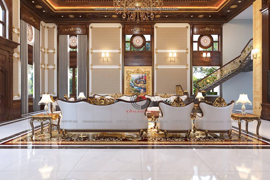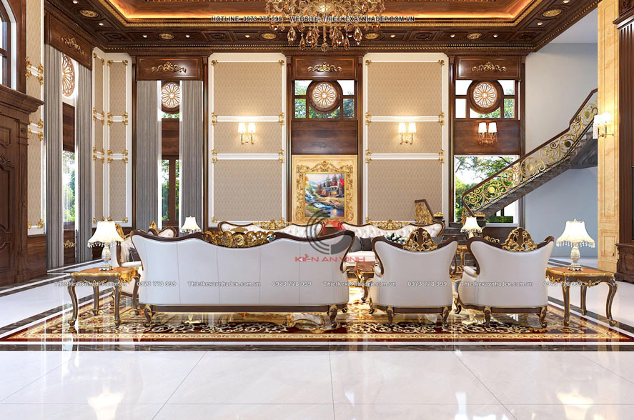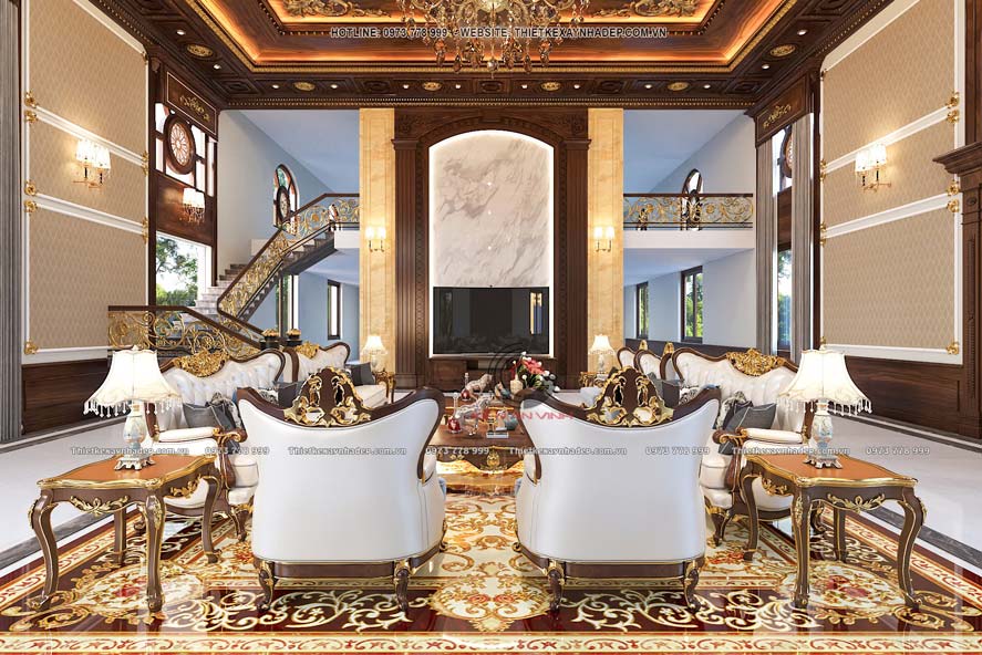 Dù mang phong cách tân cổ điển, nhưng công trình lại không lạm dụng hoa văn hay phào chỉ rườm rà. Mà ngược lại áp dụng tiêu chí tiết chế chi tiết trang trí. Ngoài giúp công trình giữ được vẻ thanh lịch, sang trọng mà vẫn nhẹ nhàng. Mà còn không gây cảm giác nặng nề khi nhìn tổng thể.