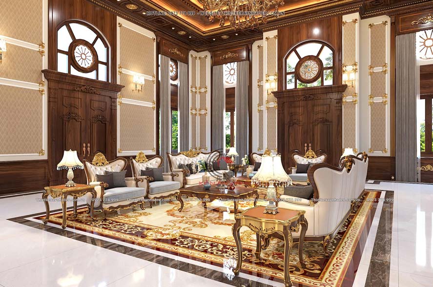 Các mặt tiền bên hông cũng được chăm chút kỹ lưỡng. Có thể thấy hệ trụ cột được bố trí từ khu vực sảnh, góp phần tạo cảm giác kiên cố và cao ráo. Những chi tiết này làm gia tăng tính thẩm mỹ. Mà bên cạnh đó còn thể hiện rõ đặc trưng của phong cách bán cổ điển đầy uy nghi.