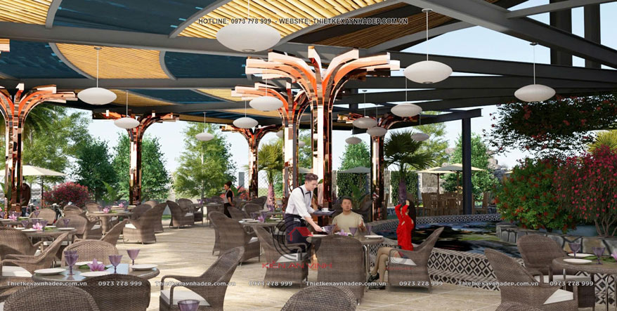 Việc thiết kế quán cà phê ngoài trời – quán cà phê sân vườn vẫn sẽ là xu hướng thiết kế lâu dài trong nhiều năm tới. Mang một không gian mở tạo không gian thư giản với cảm giác dễ chịu và gần gũi. Nhưng để bố trí sao cho các khu vực sân vườn không bị rối mắt do nhiều chi tiết cây cảnh. Cần tham khảo các mẫu quán dưới đây để hiểu hơn nhé.