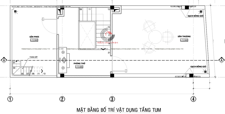 Tầng thượng: Phòng thờ, sân phơi và sân thượng