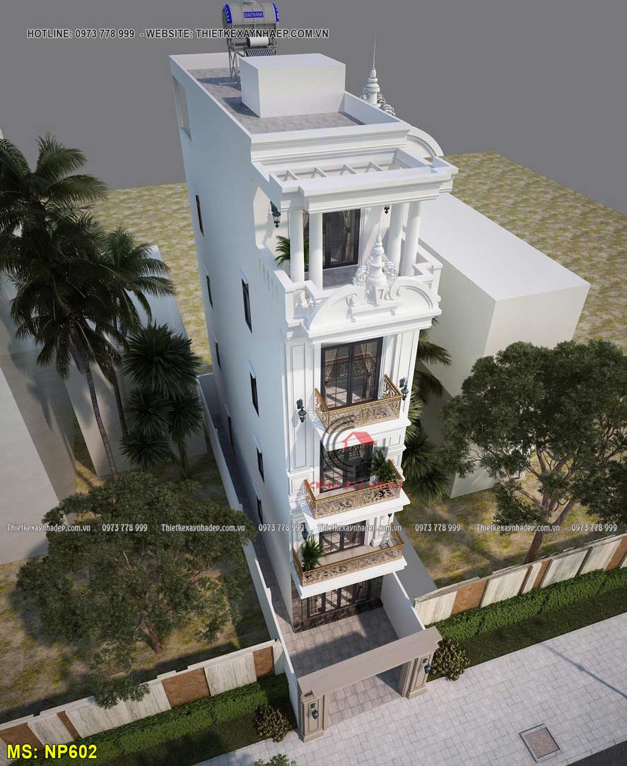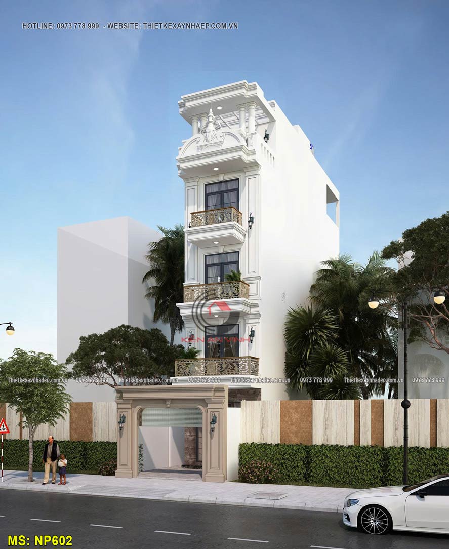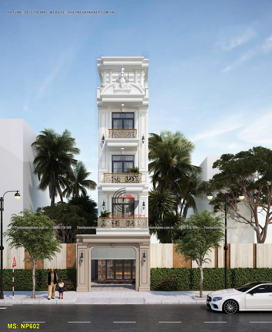 NP602 - mẫu nhà 4 tầng tân cổ điển 4x15m mang thiết kế nổi bật. Mang vẻ đẹp sang trọng chuẩn phong cách tân cổ điển. Với thiết kế này đáp ứng nhu cầu sinh hoạt cho các hộ gia đình từ 3 đến 6 thành viên. Sự kết hợp hài hòa giữa nét cổ điển và hiện đại mang đến một không gian sống vừa tiện nghi. Vừa mang thẩm mỹ phù hợp với xu hướng thời đại.