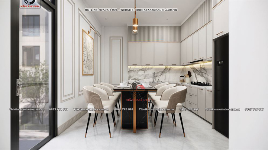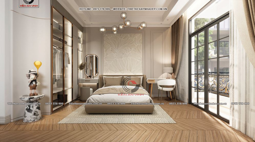 Không giống những phong cách dễ lỗi thời, thiết kế này có tỷ lệ cân đối. Tuy không quá lạm dụng các chi tiết hoa văn phào chỉ. Nhưng đường nét tinh xảo đơn giản đã tạo nên sự hài hòa tổng thể. Điều này giúp mẫu nhà 4 tầng luôn giữ được vẻ đẹp sang trọng, đẳng cấp dù đã qua nhiều năm sử dụng.