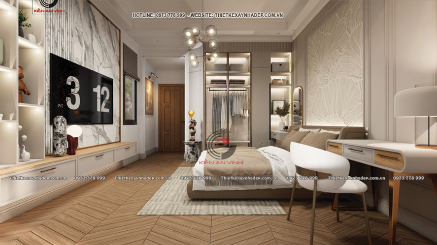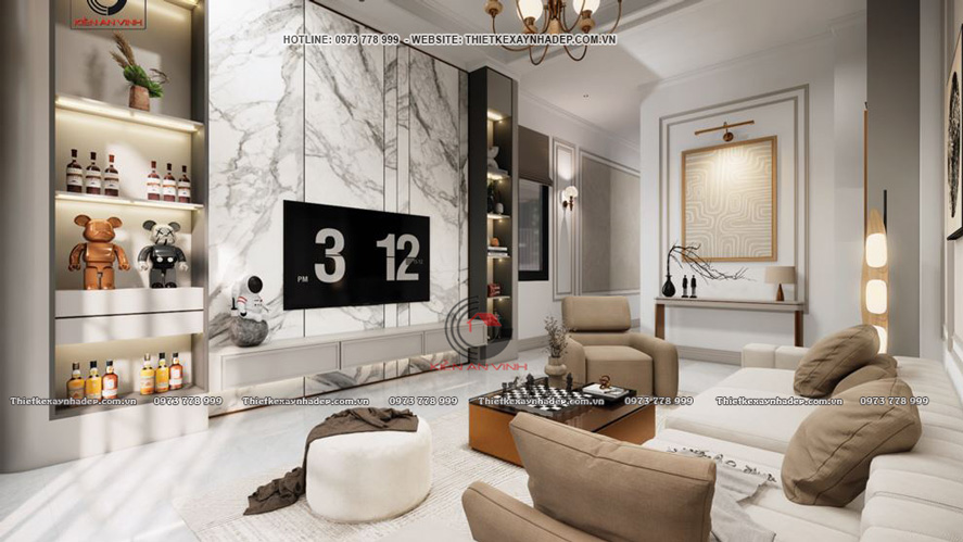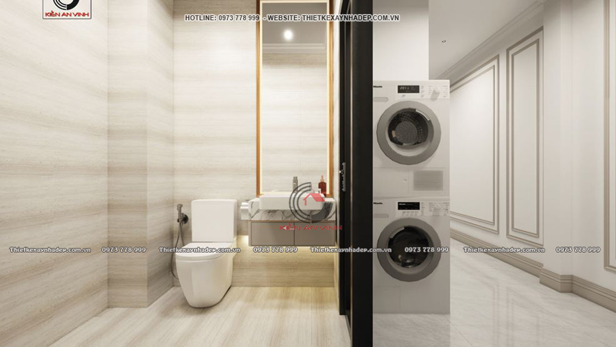 Chi tiết thể hiện tiện nghi của mẫu nhà 4 tầng tân cổ điển 4x15m