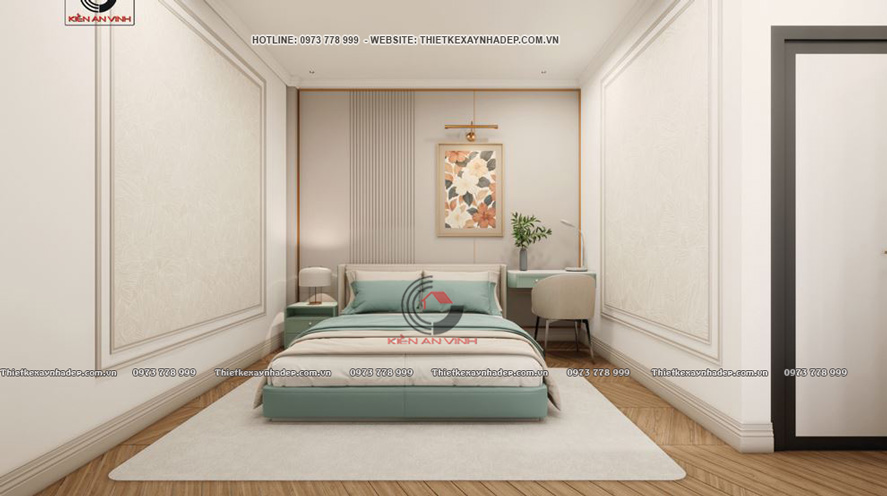 Một trong những yếu tố tạo nên sức hút của mẫu nhà này chính là cách phối màu tinh tế. Màu trắng được lựa chọn làm tông chủ đạo. Vừa mang lại cảm giác thanh lịch và nhẹ nhàng. Đông thời lại vừa giúp tôn lên các chi tiết phào chỉ, hoa văn trang trí một cách rõ nét hơn.