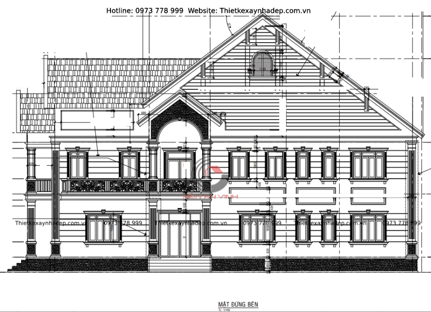Nổi bật hơn hết chính là kiến trúc mang thiết kế biệt thự 2 tầng đẹp, lại được kết hợp với hệ mái thái cao, dốc. Biến tấu tạo nét thẩm mỹ qua việc mái được thiết kế giật cấp, khiến cho công trình càng thêm lạ mắt. Chính vì mang nét đẹp khác biệt, nên có phần nổi bật hơn so với các kiến trúc lân cận. Phối cảnh được thể hiện chi tiết với mọi góc nhìn như sau.