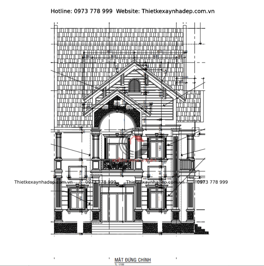 Thiết kế biệt thự 2 tầng hiện đại mái thái 9 phòng ngủ 10x25m
