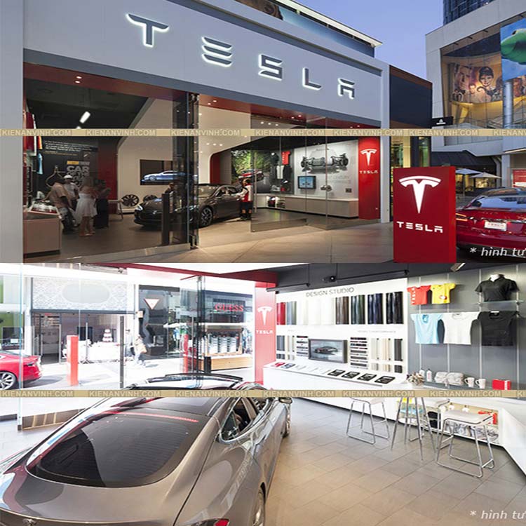 Mẫu showroom 2 tầng showroom xe ô tô Tesla đẹp rộng thoáng mát, mặt tiền thiết kế hiện...